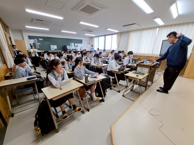 4月22日(火)に教横断型の授業を実施しました。実施した学年と教科は2年生理数科の理科と英語です。科目名は理数化学と英語コミュニケーションで行いました。頻繁に行うことができるわけではありませんが,国分高校ではこのような機会をとても重要なものだと考えています。今後も可能な範囲でチャレンジしていきたいです。生徒たちにとっても,新鮮な授業になると思います。生徒たちは,タブレットを駆使してディスプレイを眺めたりしながら授業に取り組んでいました。最先端の授業展開ですね。理科にも英語にも興味を深めてほしいです。積極的にチャレンジしてくれる先生方が多い国分高校なので,これからが更に楽しみです。